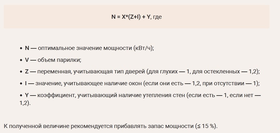 - К объему парной необходимо добавить 2 кубометра в случае установки дверей в парилку;
