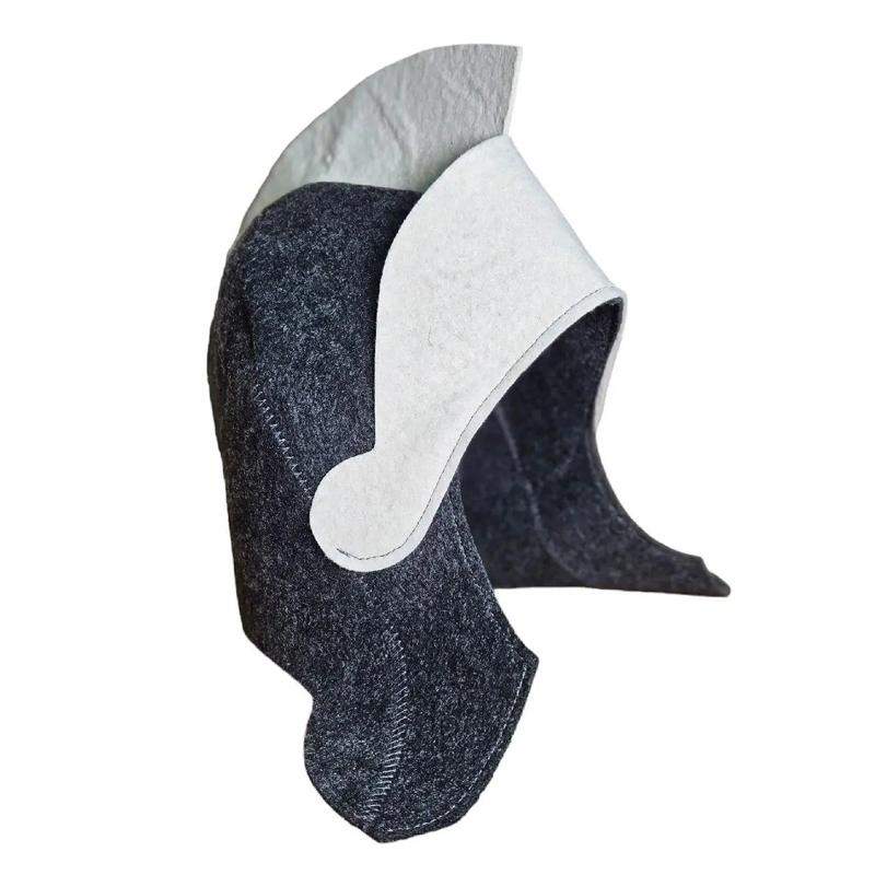 Шапка для бани и сауны выполнена в виде шлема. Незаменимый аксессуар для любителей попариться в бане и для тех, кто предпочитает сухой жар финской сауны. Необычный дизайн изделия поможет сделать ваш отдых более приятным и разнообразным. Все знают, что при посещении сауны голову нужно прятать под головной убор, чтобы не подвергать сосуды воздействию высокой температуры, а также не вредить структуре волос. Поэтому шапки для бани – это не просто оригинальный аксессуар для принятия банных процедур, но очень важная и необходимая часть этого процесса. Также такая шапка станет отличным подарком для любителей банного отдыха.